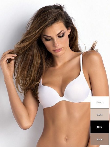 Бюстгальтер с формованными градуированными чашками из гладкой микрофибры, глубоким вырезом между чашками, на тонких бретелях. Невидимые швы позволяю носить модель под любую одежду.