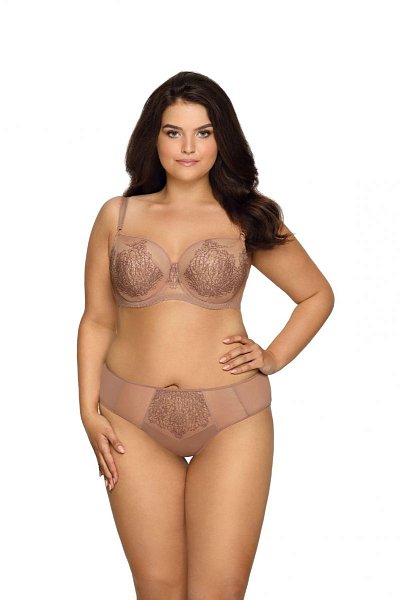 Бюстгальтер на косточках, с боковыми поддержками, чашки шитые, нижняя часть на тонком поролоне, внутренняя сторона прошита хлопковым трикотажем, внешняя из тонкой сетки с вышивкой. Бретельки не отстёгиваются, регулируются по длине. У бюстгальтеров/купальных лифов AVA довольно тугой пояс, который адаптируется под тело после нескольких дней носки или одной-двух стирок. Рекомендуем использовать удлинитель пояса бюстгальтера на первое время либо выбирать следующий за «своим» размер, с поясом длиннее.