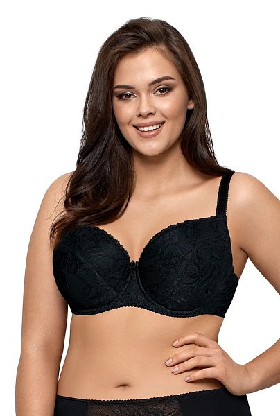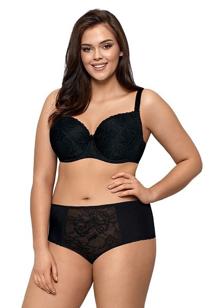 Бюстгальтер Tatiana U с шитыми чашками из тонкого поролона на косточках, с дополнительными боковыми поддержками, со съёмными вкладышами пуш-ап. Внутренняя сторона проложена хлопковым трикотажем, внешняя из гипюра. Бретельки пришиты, регулируются по длине. На спине застёжка на удлинитель, количество крючков в ряду застёжки увеличивается пропорционально размеру бюстгальтера.