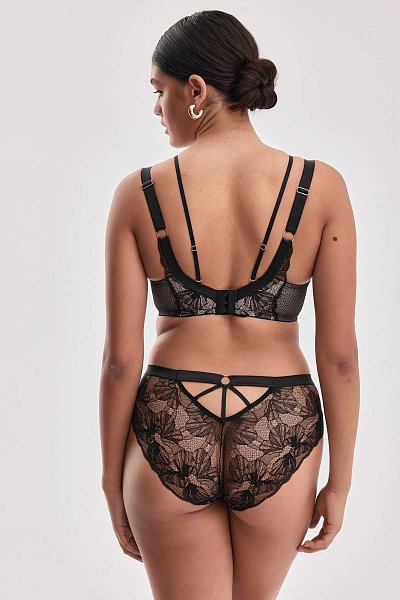 Бюстгальтер Volare U/W выполнен на косточках, чашки шитые на тонком поролоне телесного цвета, со съёмными пуш-ап вкладышами, внешняя сторона богато декорирована нежным цветочным кружевом. Пояс из эластичного сетчатого кружевного полотна на контрастной подкладке из стабилизирующей сеточки. Бретельки не отстёгиваются, регулируются по длине. На спине застёжка на удлинитель, количество крючков в ряду застёжки, увеличивается пропорционально размеру бюстгальтера, фурнитура металлическая цвета меди. В зоне декольте дополнительные съемные тонкие бретели, регулируются по длине, крепятся между чашками и на спинке.
