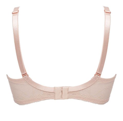 Бюстгальтер Sublime 01 P-UP выполнен на косточках (на каркасах), с дополнительными боковыми поддержками, чашки шитые на тонком поролоне телесного цвета, со съёмными пуш-ап вкладышами, внешняя сторона чашки из роскошного кружева с цветочным узором, пояс кружевной, продублирован эластичной сеткой. Бретельки отстёгиваются, регулируются по длине. На спине застёжка на удлинитель, количество крючков в ряду застёжки, увеличивается пропорционально размеру бюстгальтера, фурнитура металлическая матовая цвета меди. Между чашек украшение в виде подвески и атласной ленточки.