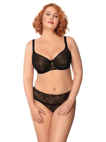 Бюстгальтер с формованными поролоновыми чашками типа спейсер на косточках, с внутренней стороны чашки боковая поддержка, внешняя сторона чашек гладкая. На спинке застёжка на удлинитель, количество крючков в ряду застёжки увеличивается пропорционально размеру бюстгальтера.