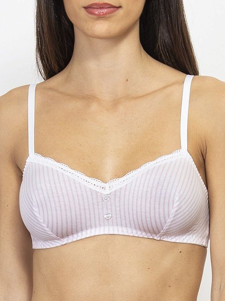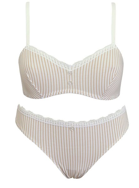Комплект: топ с мягкой чашкой, без косточек, и трусики-бразильяна со средней линией талии. Несъемные регулируемые бретели, застежка в 2 ряда на 4 позиции. Выполнен из хлопка. Ластовица из 100% хлопка. В комплекте: бюстгальтер-топ и трусики-бразилиана.