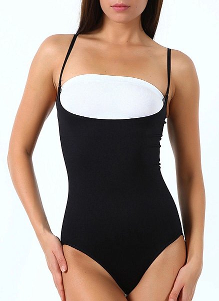Боди женское корректирующее с открытым лифом, бесшовное, с сильной степенью коррекции. Очень плотное плетение ткани обеспечивает сильный утягивающий эффект в области живота, ягодицы рельефно выделены, бретельки регулируются по длине. Идеальный вариант под декольтированное платье.