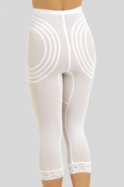 Корсетные штаны-капри сильной коррекции со специальной вставкой на животе и особым кроем из круговых швов, обеспечивающих уникальную коррекцию бедер и талии. Нижний край изделия оторочен эластичным кружевом с силиконовой лентой. Длина – до середины голени. Ластовица - 100% хлопок.