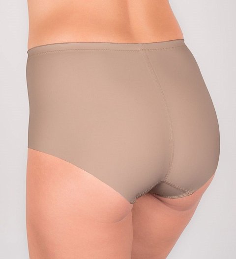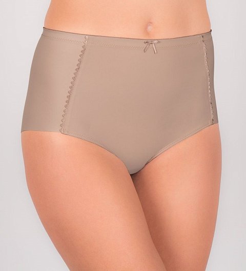 Моделирующие трусы с высокой линией талии и низким вырезом по линиям бедер. Вертикальные швы на фронтальной панели декорированы лентой с петельчатым краем. Шов по центру задней панели обеспечивает максимальное прилегание и комфортную посадку. Лазерная бесшовная обработка вырезов по линиям бедер исключает передавливание, позволяя изделию быть максимально незаметным под одеждой. Ластовица: 100% хлопок.