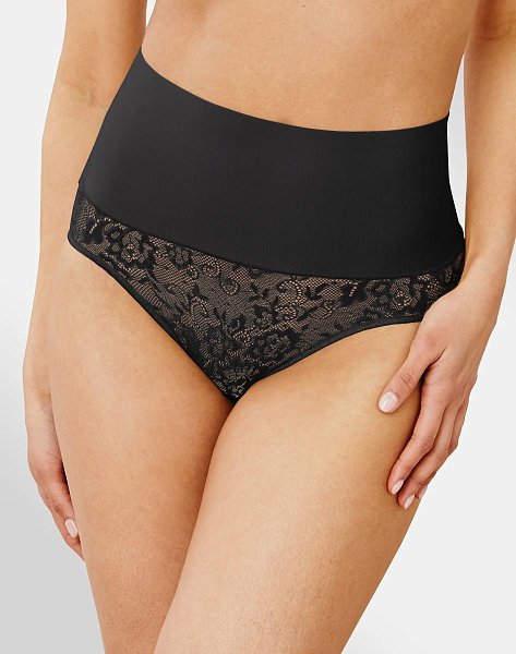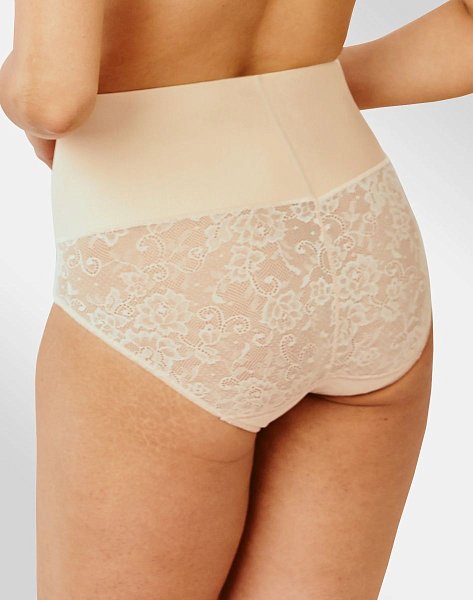 Трусы на высоком корректирующем поясе. Эластичное кружевное полотно с цветочным орнаментом, в сочетании с эластичным широким поясом, выглядят сексуально и идеальны для коррекции линии талии и живота при повседневной носке. Пояс, выполненный по технологии SmoothTec, надежно фиксируется на талии, не скручиваясь. Охлаждающий эффект по все окружности. Тонкая эластичная резинка по вырезам линии бедер не пережимает. Ластовица: 100% хлопок.