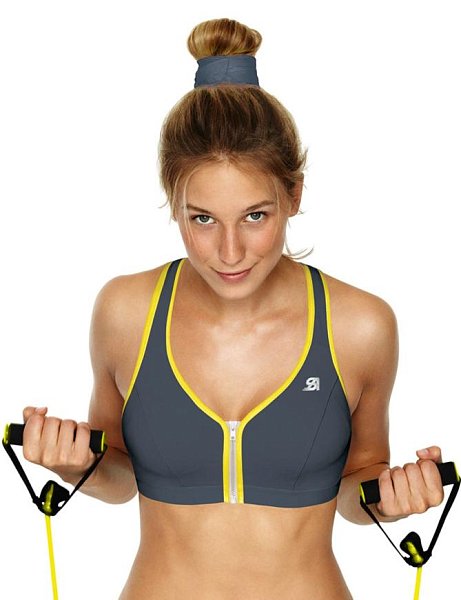 Отзывы о Серо-желтый спортивный бюстгальтер с фронтальной застежкой-молнией