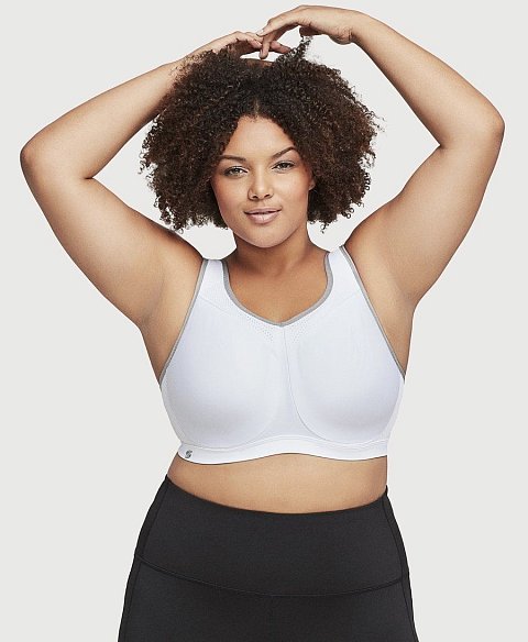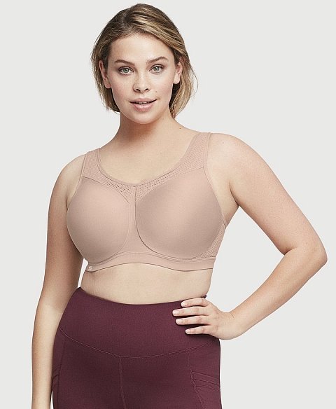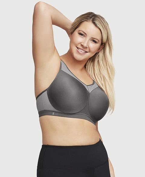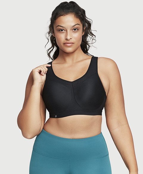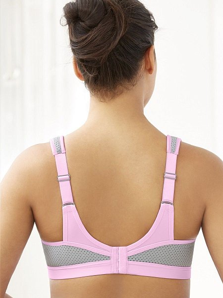 Спортивный бюстгальтер высокой степени поддержки, с мягкими бесшовными чашками, на каркасах. Широкие двухслойные боковые и задняя панели эластичны в двух направлениях и не сковывают движений. Каркасы Wonderwire защищены мягкой ворсистой тканью для комфортного соприкосновения с телом. Вставка по линии декольте, широкие бретели, боковые панели выполнены из особой дышащей и влагоотводящей ткани в сетку, позволяющей сохранять прохладу и сухость. Расширенные спереди не эластичные бретели переходят в эластичные на спинке, и регулируются по длине.