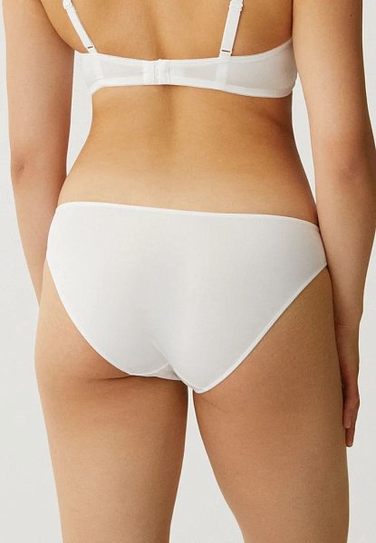 Женские трусы-бикини с низкой посадкой. Полупрозрачная фронтальная панель из ткани в гусиную лапку на мягкой подкладке. Задняя - из гладкой микрофибры. Линия талии и вырезы по линиям бедер обработаны узкой эластичной бейкой. Ластовица: 100% хлопок. Важно: в карточке указаны российские размеры! На этикетке европейские (российский размер минус шесть)!